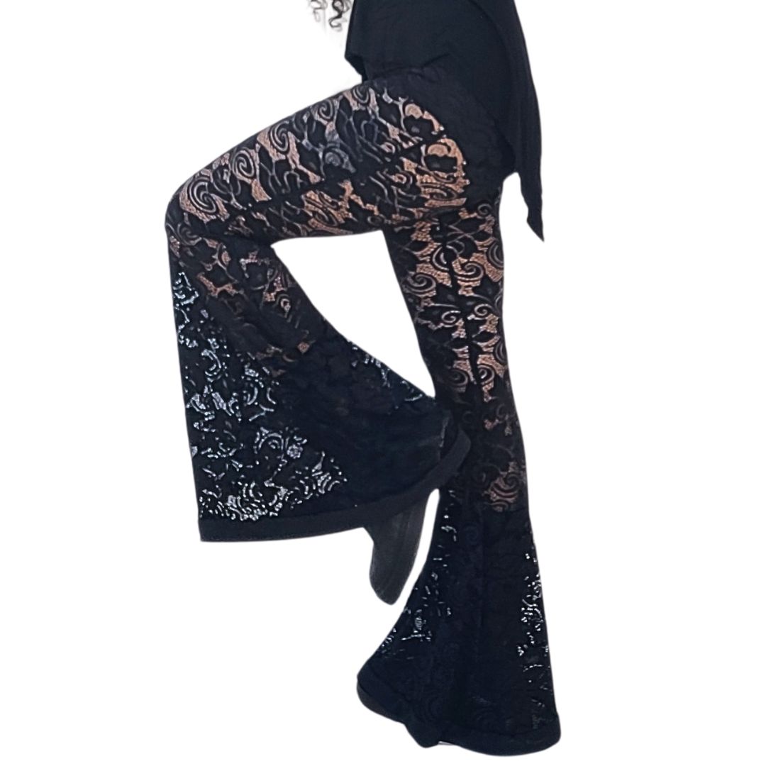 Sinta-se poderosa, confiante e deslumbrante com a Calça Flare de Renda da Diamante Infectado.