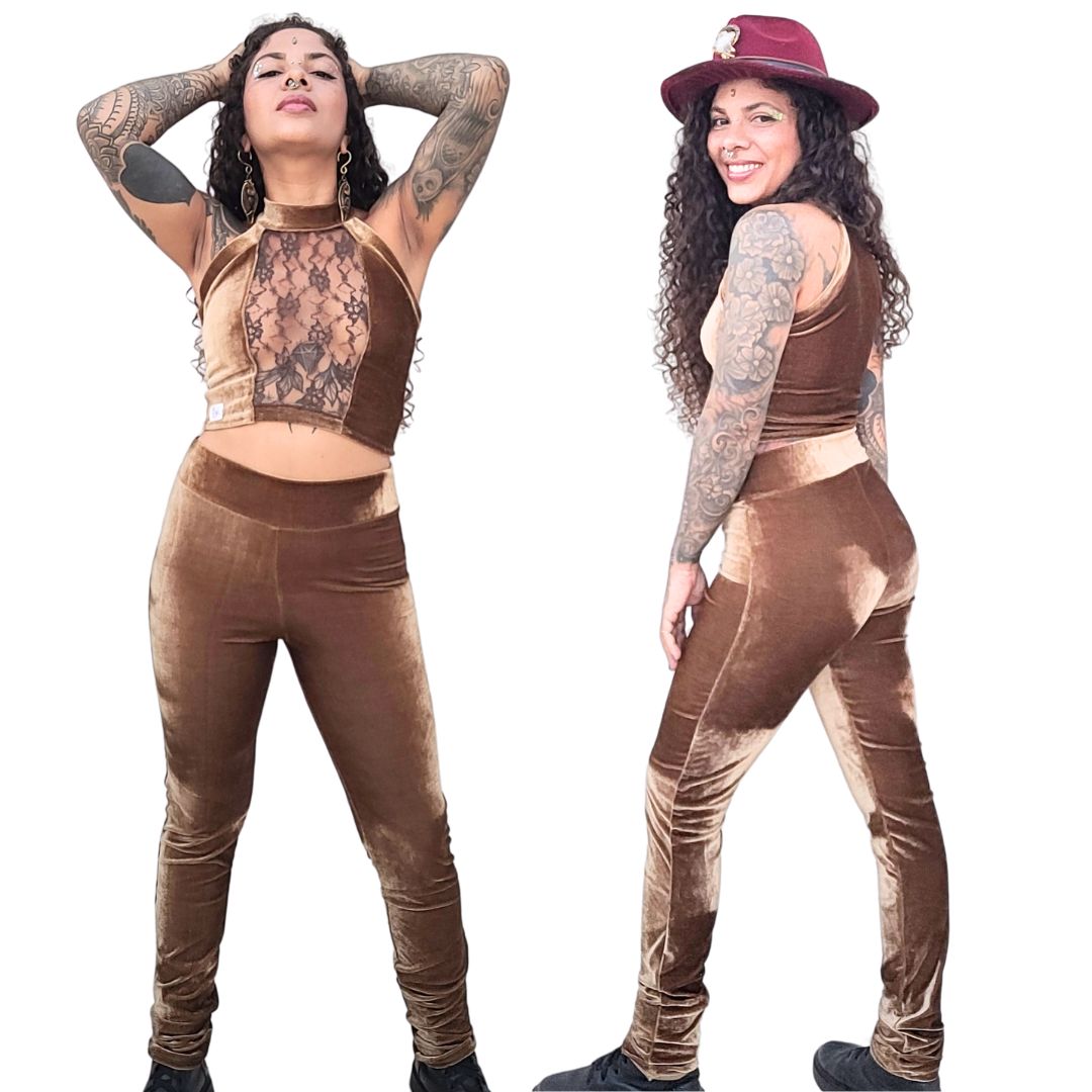 Adicione um toque especial com detalhes em renda lateral ou na barra, criando um visual único e cheio de personalidade. A Calça Skinny de Veludo da Diamante Infectado é a escolha perfeita para mulheres que buscam um estilo sofisticado, confortável e versátil. Invista em uma peça que te empodera e te faz sentir ainda mais linda e confiante.